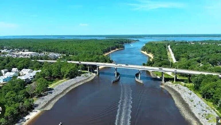 That cut was from Seabreeze to the Cape Fear River transforming the Federal Point peninsula into an island thus requiring a bridge to be constructed. A temporary wood bridge spanning the new waterway was built in just ten days in February of 1930. It served until a permanent steel swing bridge opened September 9, 1931. This two-lane swing bridge was in place from 1931 until the present concrete high-rise bridge opened on August 18. 1962